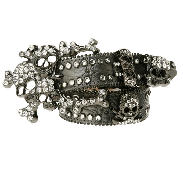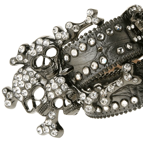 It features stacked gun metal skulls & crossbones combined with buccaneer ornaments in the same metal finish.