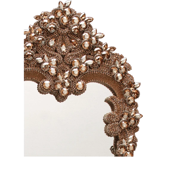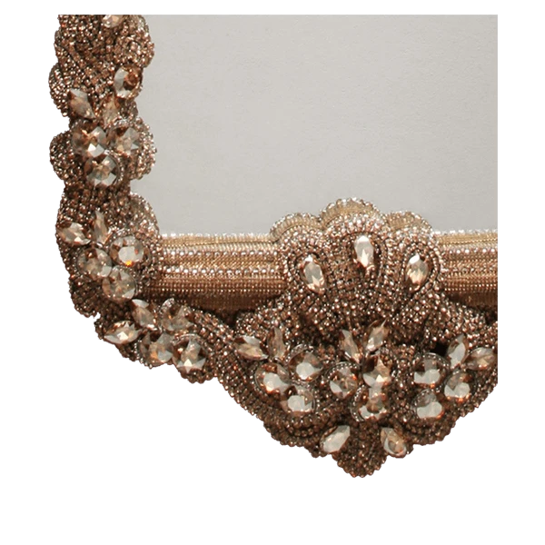 This unique and stunning b.b.simon Jeweled mirror is designed with countless sparkling little Lt. Colorado(Gold) Swarovski crystals. If you are looking for a mirror that will easily stand alone as an eye_catching focal point in your home or office you have found it. M-201-GOLD is handcrafted in the USA by the most specialized artificers of California and will delightfully add sparkle to any room.