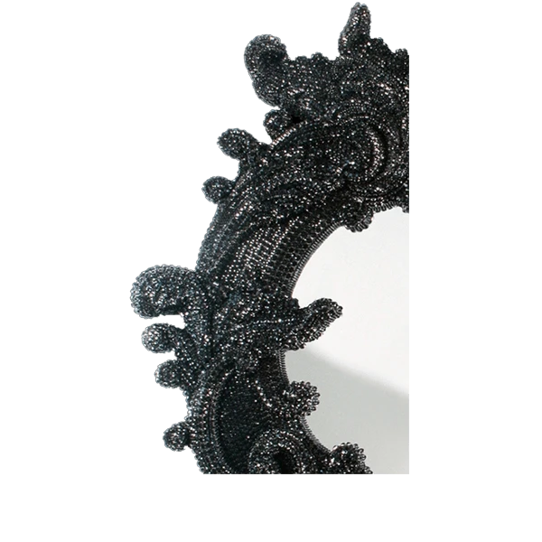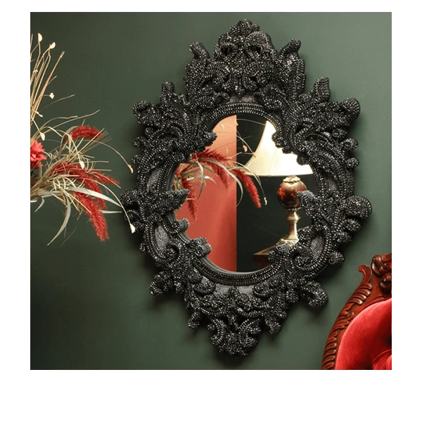 Gift your family, friends or even yourself, with this one-of-a-kind jeweled b.b.simon decorative wall mirror. This unique mirror is handcrafted in the USA for those with a desire to be different. The M-203-JET is designed with glimmering little Jet Swarovski crystals. No matter the room, this gorgeous piece of Art will become an eye-catching focal point in your home or office.