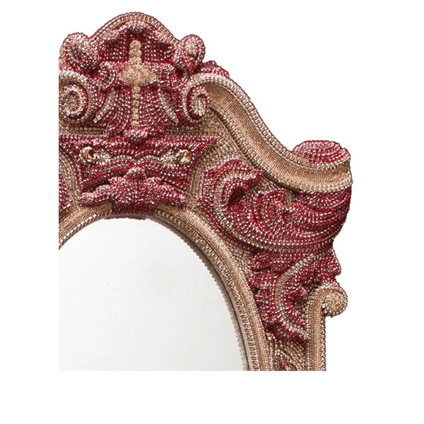 This unique and stunning b.b.simon Jeweled mirror is adorned with countless sparkling little Light Colorado and Siam Swarovski crystals. M-543 is handcrafted in the USA by the most specialized artisans of California. If you are looking for a mirror that will easily stand alone as an eye_catching focal point in your home or office you have found it.