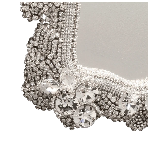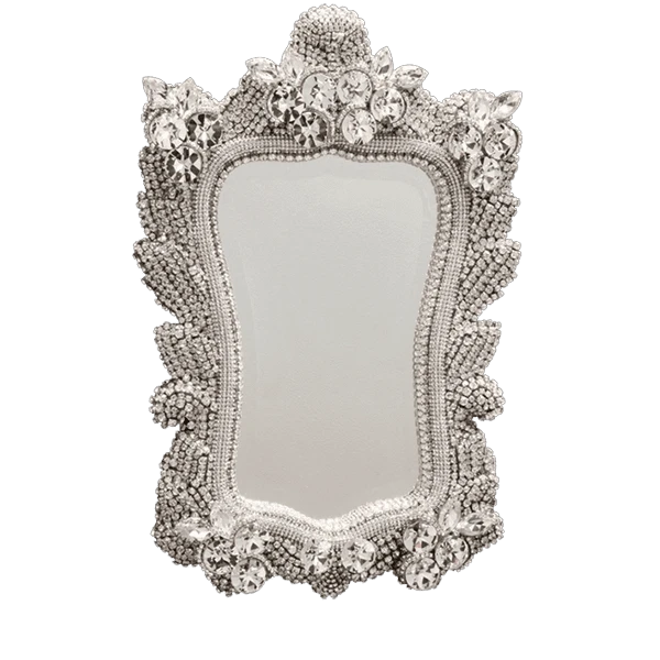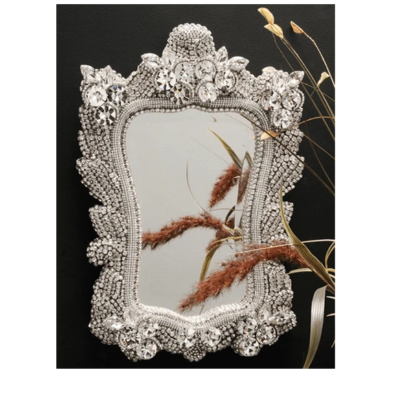 Creat an admirable accent in any room with this stunning decorative jeweled wall mirror. This unique mirror brings elegance, a bit of antiquity and lots of uniqueness to your home or office. The M-524 is handcrafted in the USA by the most specialized artisans of California. It is designed with sparkling little Clear Swarovski crystals.