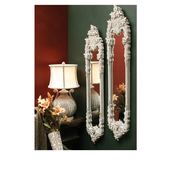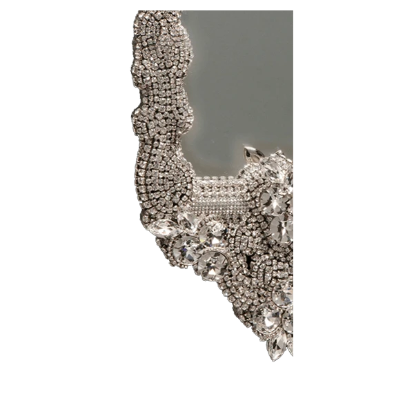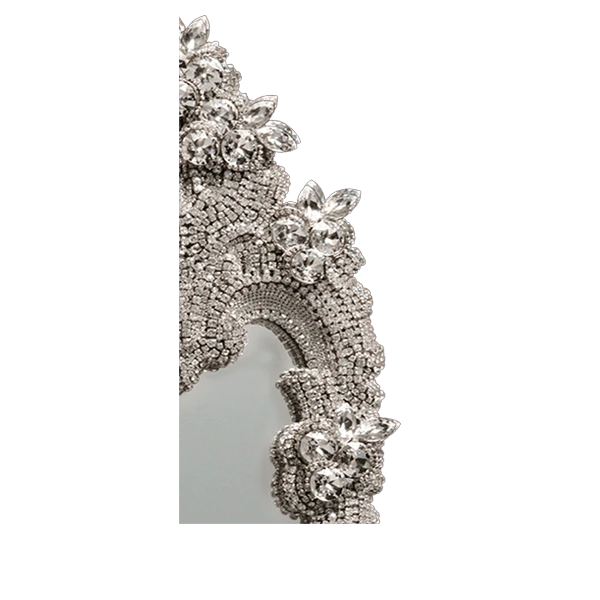 This unique and decorative b.b.simon Jeweled mirror is adorned with countless sparkling little Clear Swarovski crystals. If you are looking for a mirror that will easily stand alone as an eye_catching focal point in your home or office you have found it. The M-523 is handcrafted in the USA by the most specialized artisans of California.