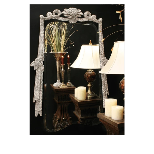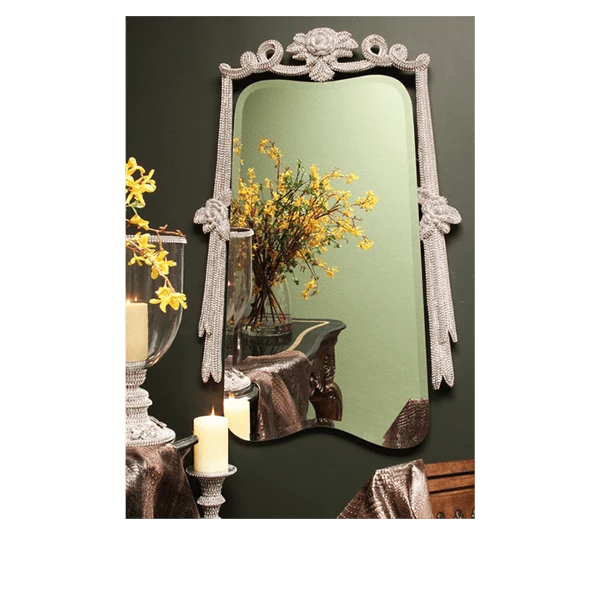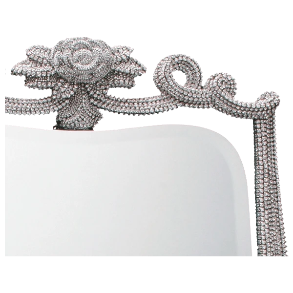 This stunning modern jeweled mirror is handcrafted in the USA for those with a desire to be different.The M-531 is designed with several tiny Clear Swarovski crystals. It easily stands alone as an eye_catching focal point in your entry, bedroom or guest room.
