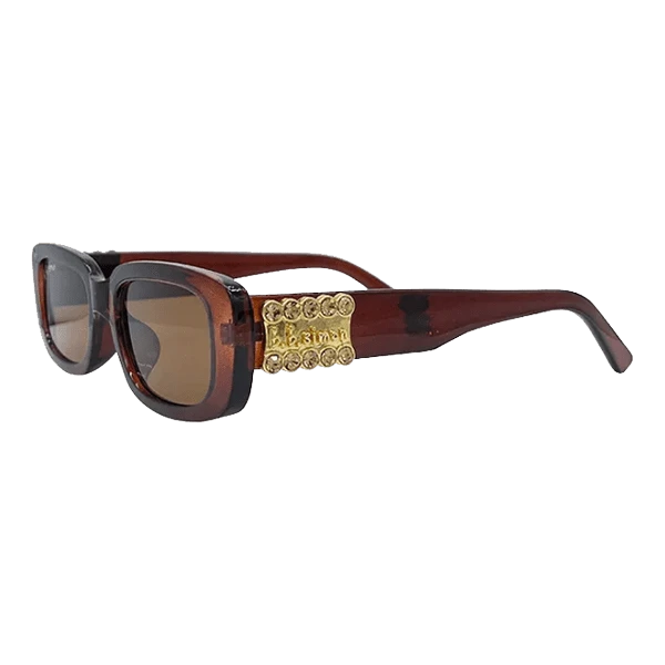 Inspired by our love for dramatic retro silhouettes, these brown sunglasses are adorned with Swarovski crystals. The matching embellished temples display an embossed logo between two rows of crystals.