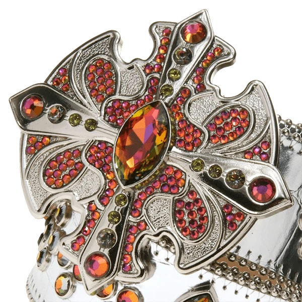 Style 221 features a stunning medieval axe with a stylized Maltese cross in the center showcasing a magnificent marquis-cut Volcano Swarovski crystal.