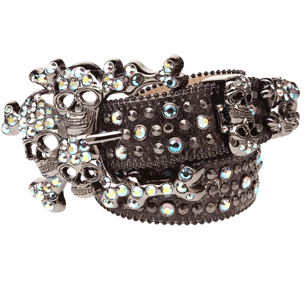 Style 433 is to die for! It features a buckle made of stacked copper finish skull & crossbones combined with glimmering black diamond Swarovski crystals.