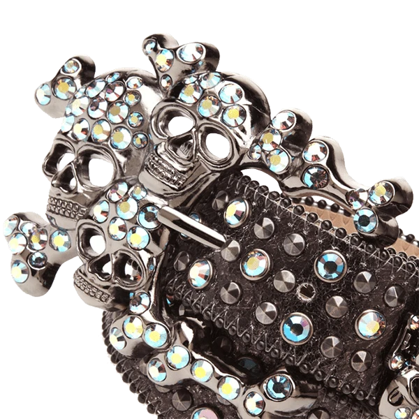 The three-piece buckle set is formed by several skulls stacked on top of each other.