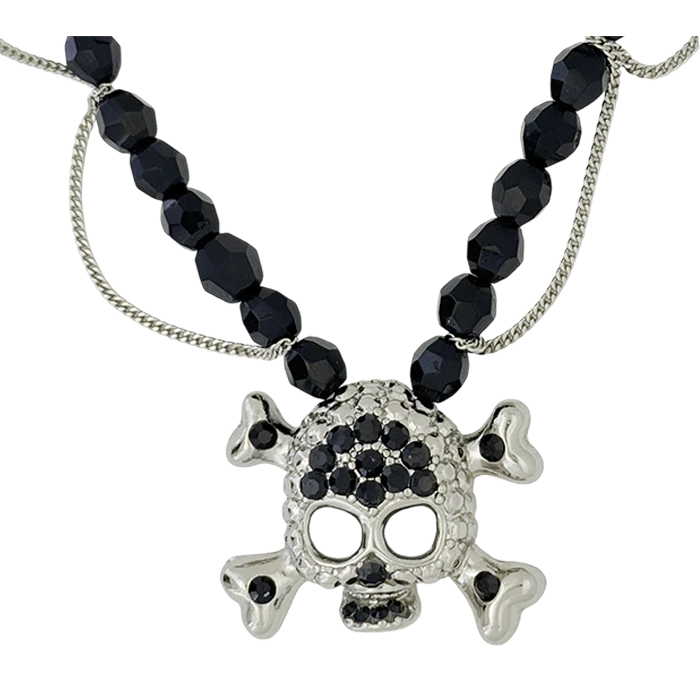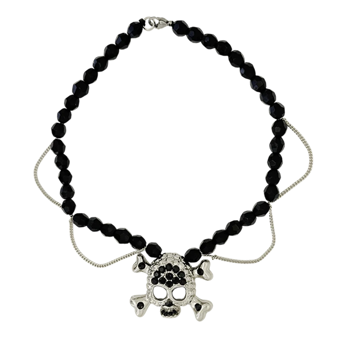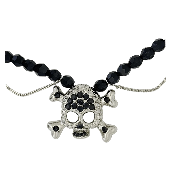 Skull N Crossbones Bead Necklace – Black/Jet – B.B. Simon®