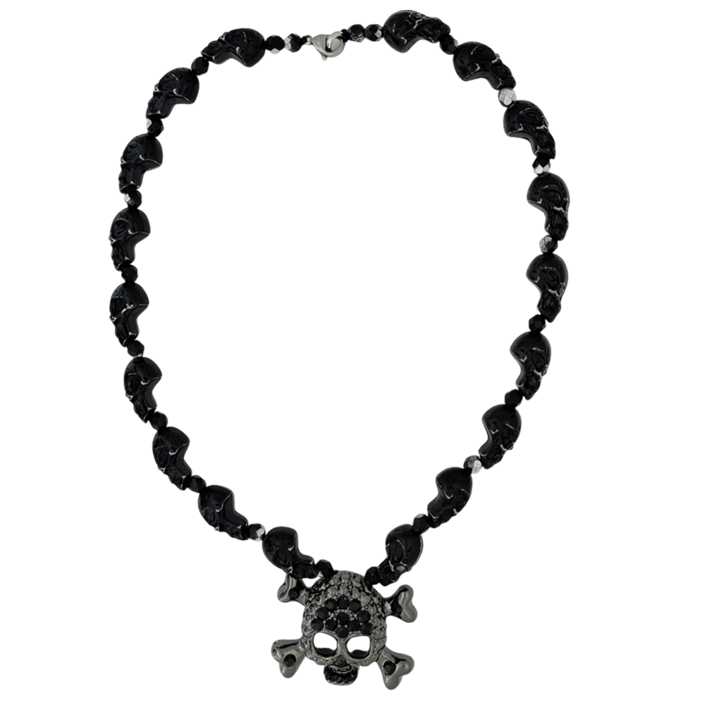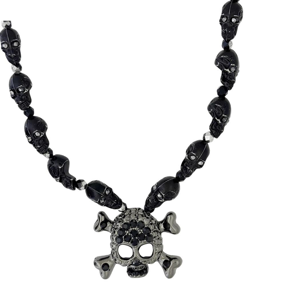 Skull N Crossbones Nightmare Necklace – Black/Jet – B.B. Simon®