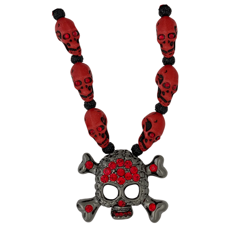 Skull N Crossbones Nightmare Necklace – Red/Red – B.B. Simon®