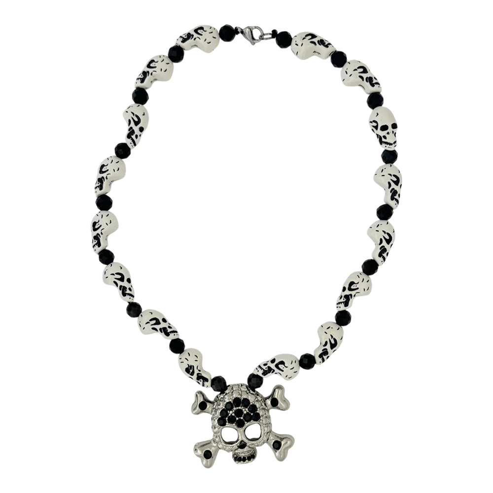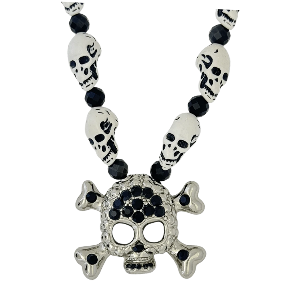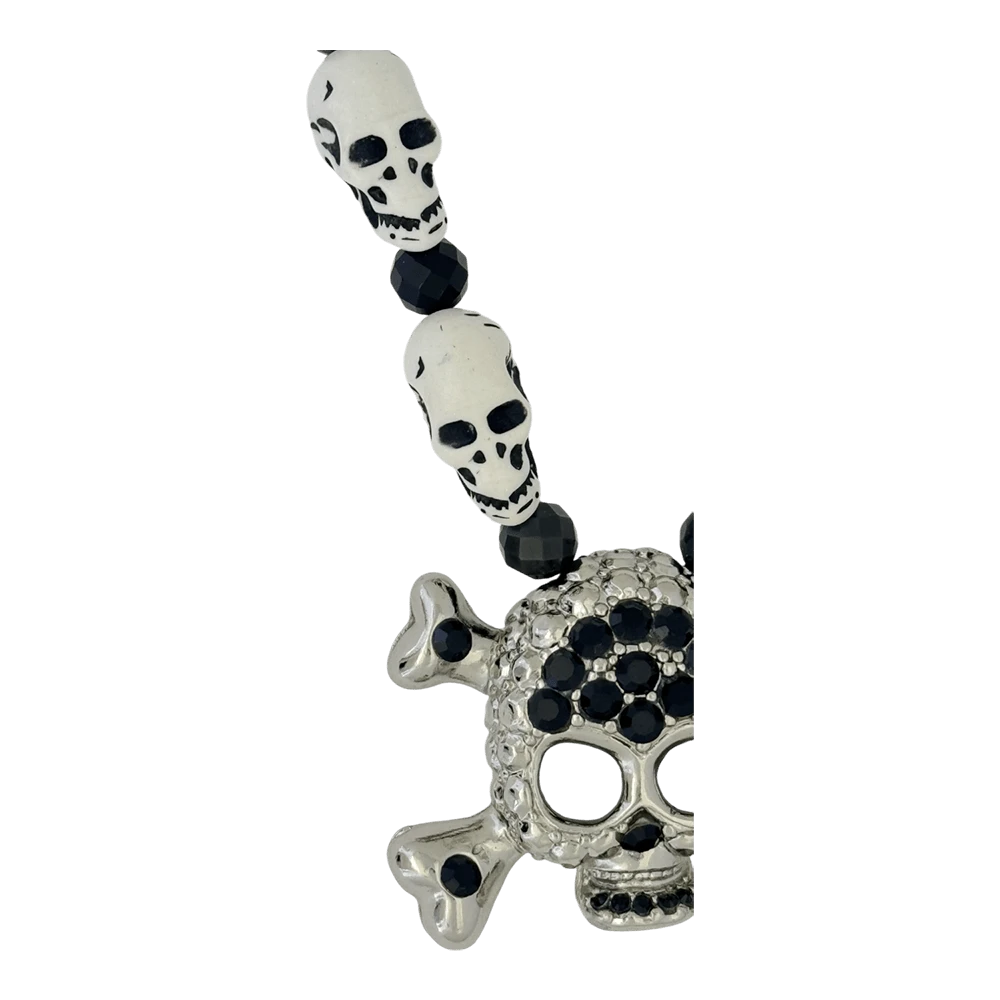 Skull N Crossbones Nightmare Necklace – White/Jet – B.B. Simon®