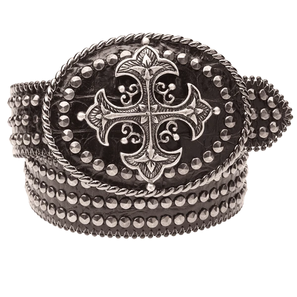 Featuring a cross buckle and brilliant silver studs, the cross, a symbol of Christianity and a representation of balance found in the four elements makes a wonderful statement piece.