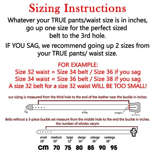 Go one size up from your actual pants size to achieve the perfect fit in a BB Simon Belt.