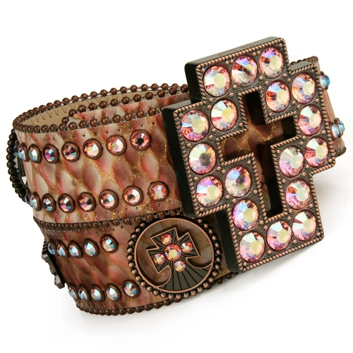 Featuring a rustic cross buckle and brilliant brown colored Colorado Swarovski crystals, the cross, a symbol of Christianity and a representation of balance found in the four elements makes a wonderful statement piece.